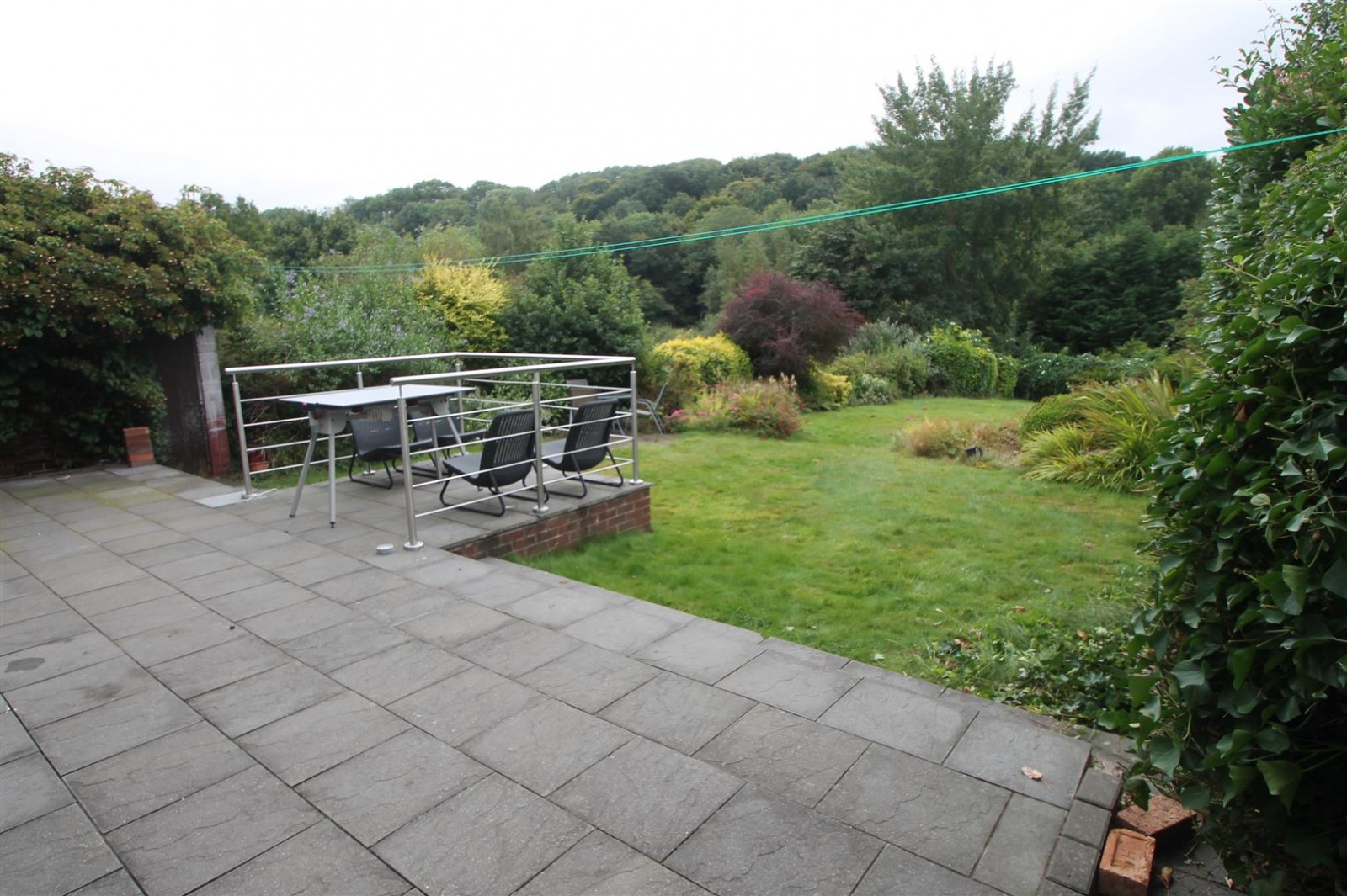 Rear: Having large paved patio area, lawn beyond it with mature border shrubbery and second paved patio to the left hand side of the lawn.