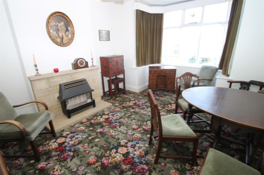 With feature fireplace, gas fire, double glazing to rear elevation and double glazed door into garden.